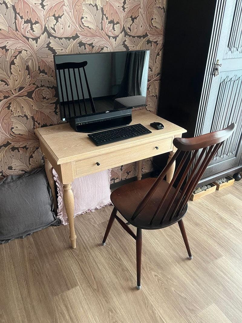 この2つ引き出しのデスクは子供から大人まで ずっと使っていただけるデザインです。 鏡をおいてドレッサーにも。