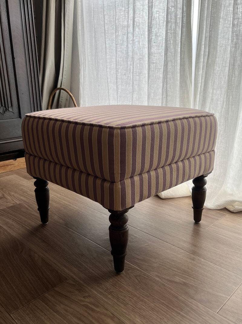 玄関に置いて靴を履くときの補助にもとても便利です。 ブーツや紐靴なんかは立ったままだとなかなか大変。 ゆっくり腰をおろせる方がいいですね。 生地はリネン、コットンなどもご用意しておりますので、お好きなスタイルでお作り致します。サンプルをお送り致しますのでお気軽にご連絡下さいませ。